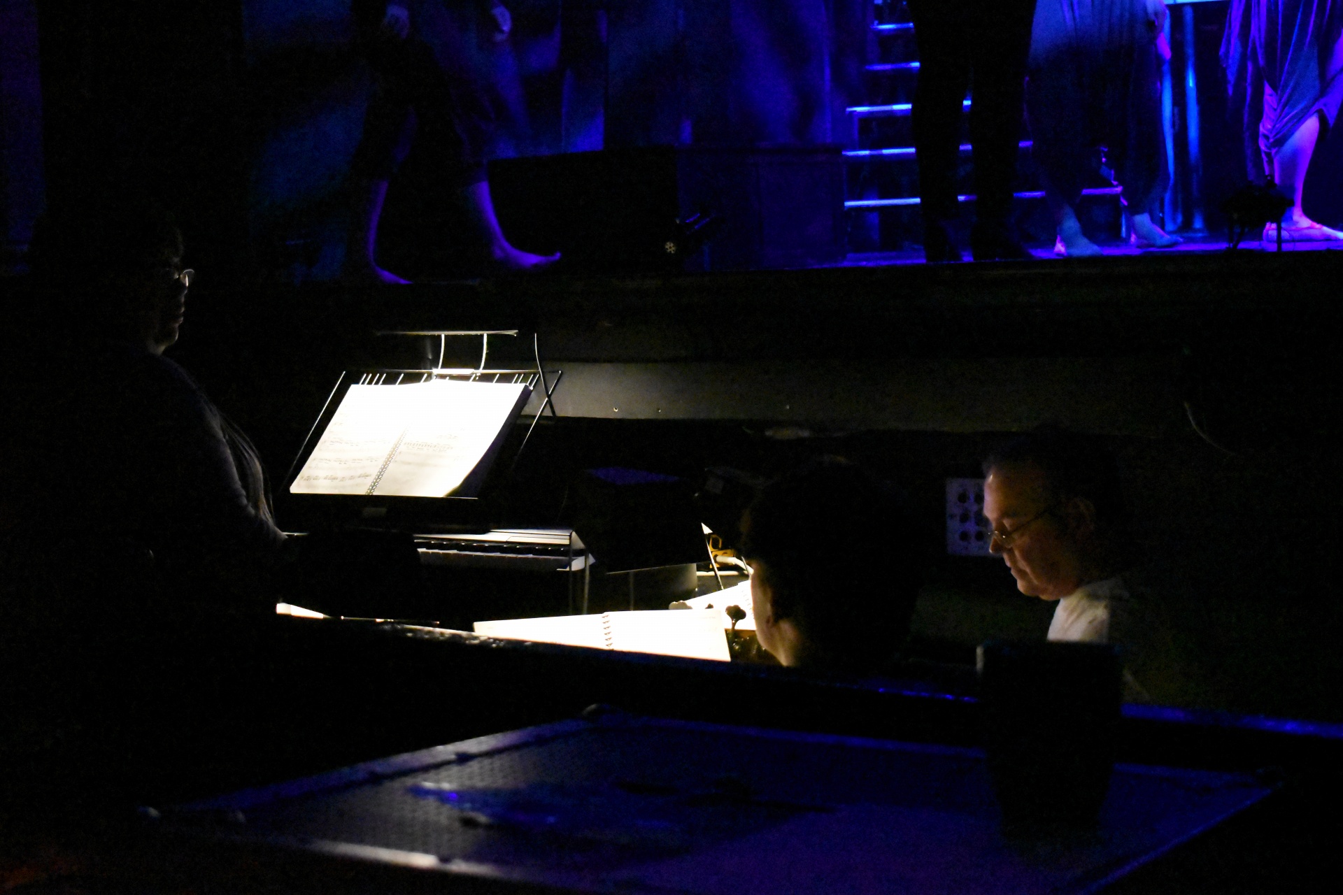 In the orchestra pit, getting ready for Monday dress rehearsal...